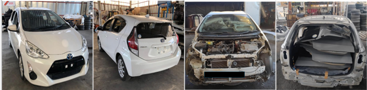 解体車は前後でカットしたハーフカットなどを含み、適切な解体処理がなされている自動車のパーツの塊になります。